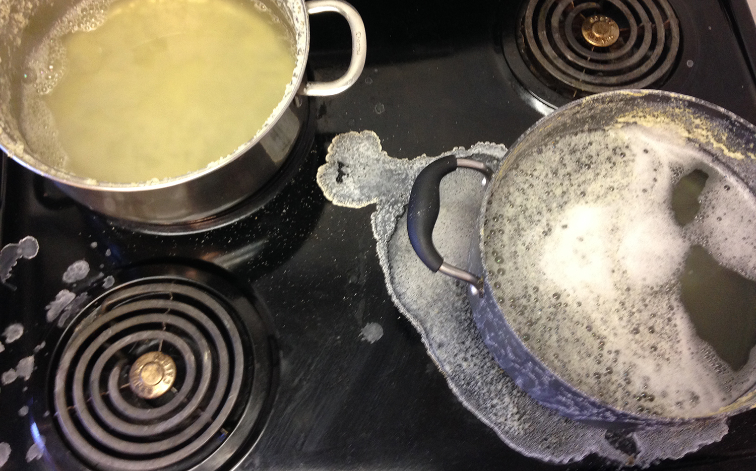 Left to right: boiling; boiled; baked